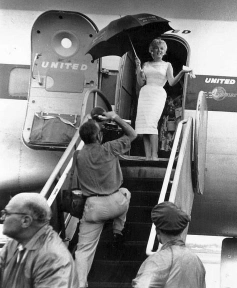 Except that for most people, it was neither ‘golden’ nor ‘an age of travel’. Because in 1950, most people couldn’t afford to take a vacation, much less book a seat next to Marilyn Monroe.